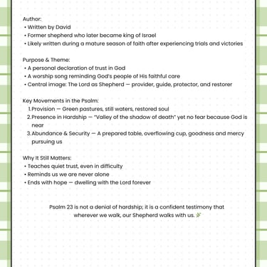 SUBSCRIBE to our Email List for Psalm 23 Study to receive the newest updates, reading plan and daily posts.