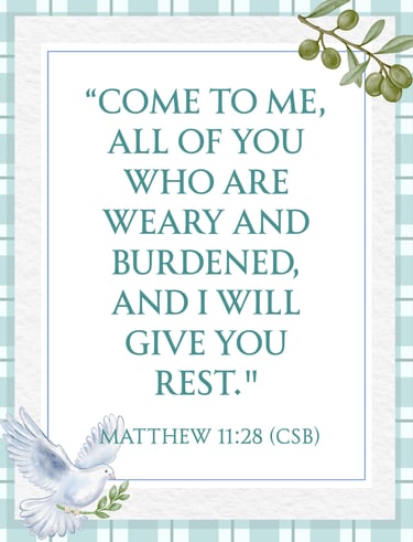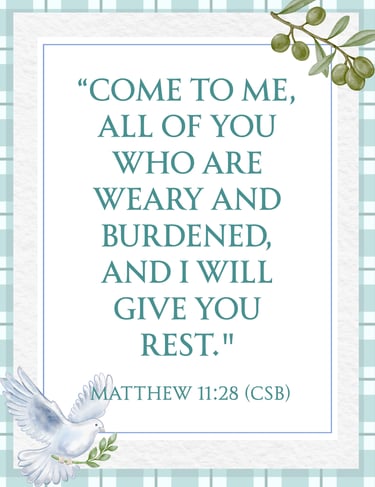 "Come to me, all of you who are weary and burdened, and I will give you rest."